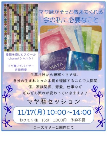 マヤ暦がそっと教えてくれる 今の私に必要なこと 11月17日(月) 生年月日から紐解くマヤ暦 自分の […]