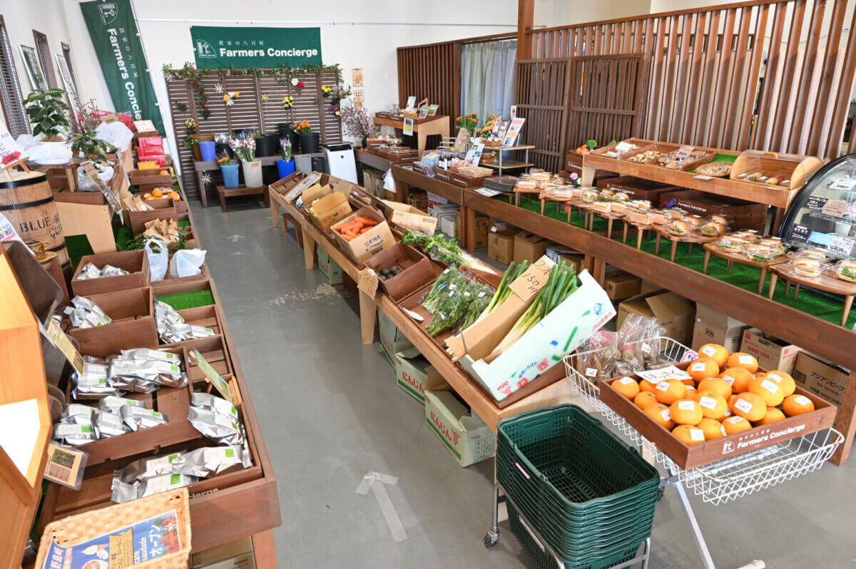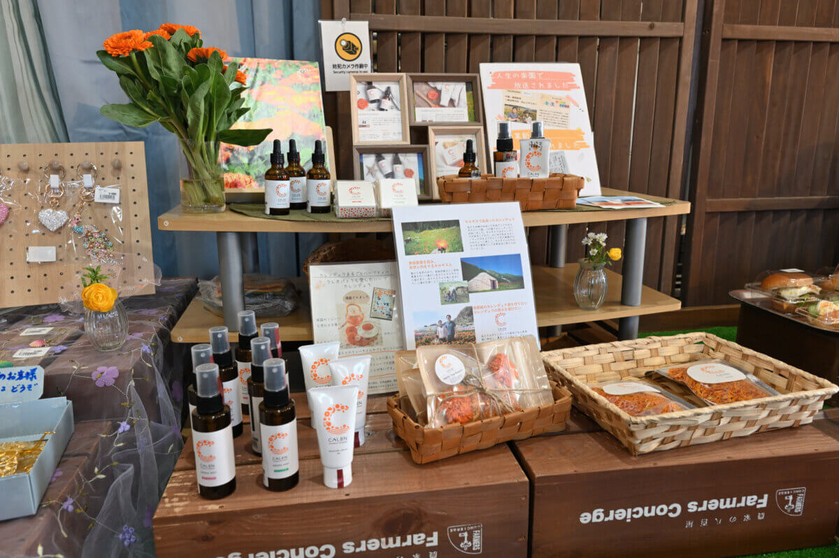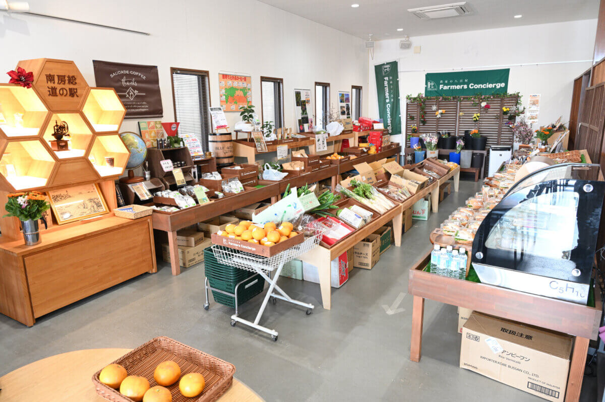 物産コナーでは地元野菜や白浜を代表するキンセンカに関連した商品、看板商品のコーヒー豆などがずらり。