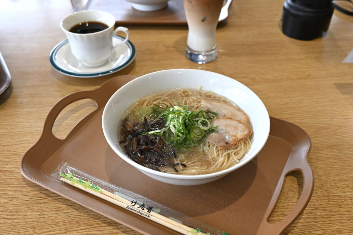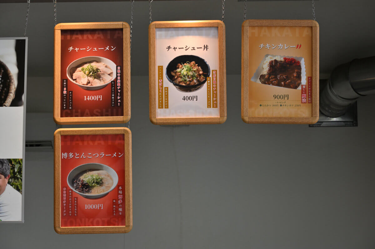 なんとラーメン、それも博多とんこつラーメンです。サイドメニューのチャーシュー丼や、替え玉にも対応するとのこと。