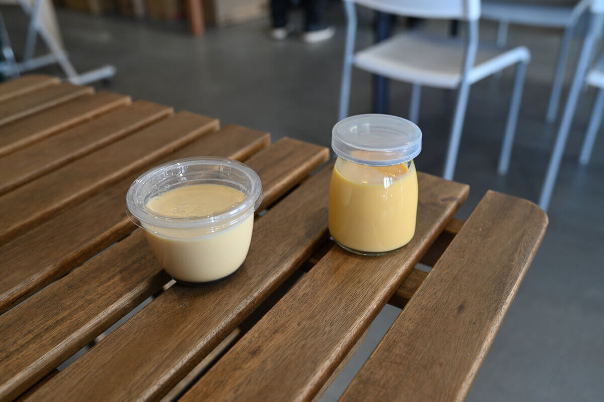 プリンもとろける(飲む)タイプと固めのしっかりしたタイプの2種類がありました。