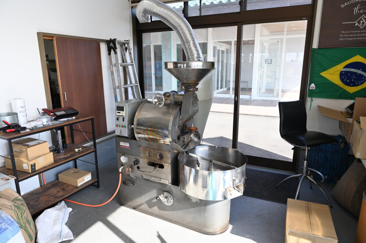 店内には大きな焙煎機が構えており、裏のハウスではコーヒーが栽培されていました。