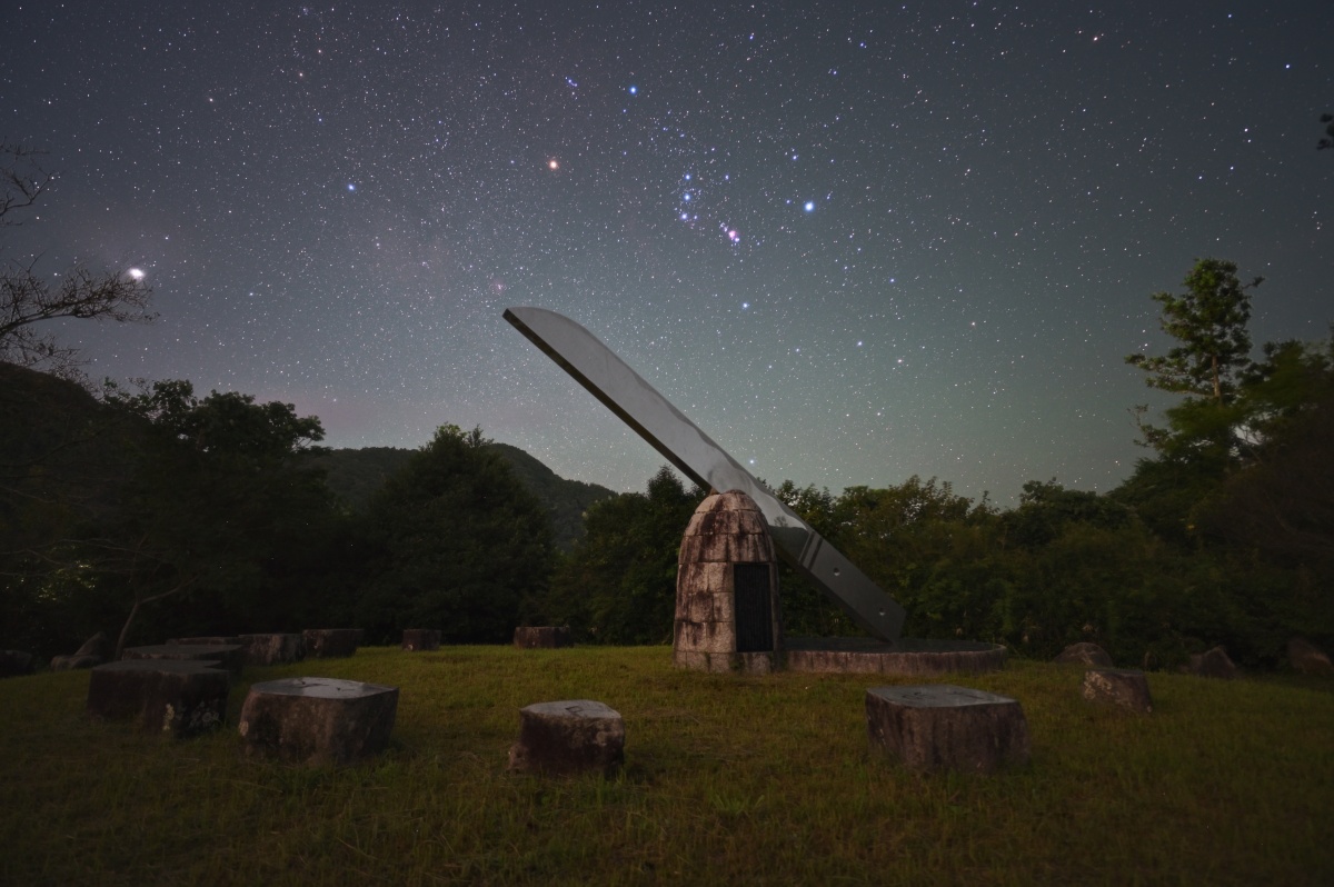 小野派一刀流の流祖である剣豪、小野忠明の生誕の地を記念して造られた公園。 巨大な刀のオブジェは日時計になっています。