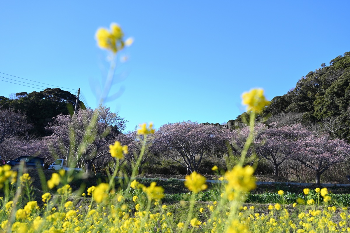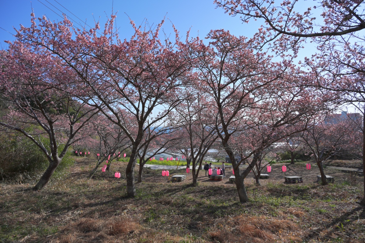 安房に花栽培をもたらした間宮七郎平が開いた庭園で、ここに植えられた寒桜は旧暦の元旦に咲くことから元朝桜(がんちょうさくら)と名付けられた。