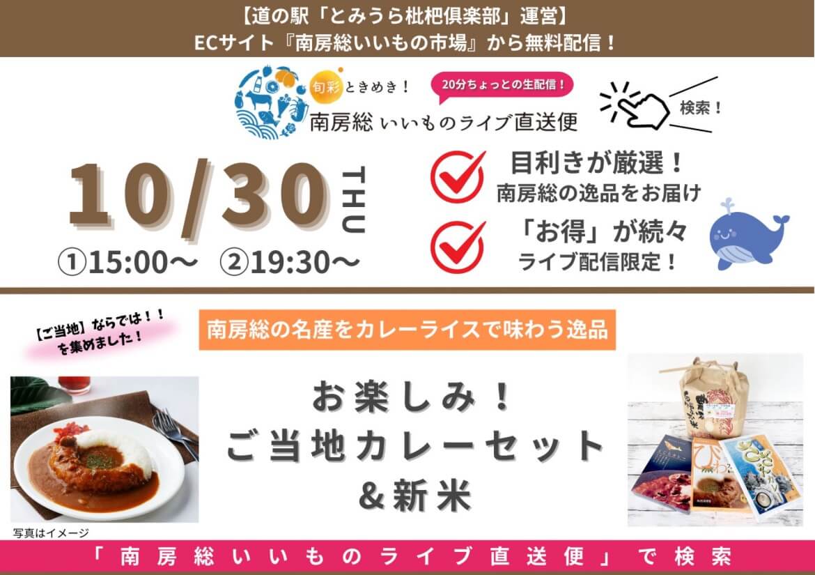 南房総地域のカレー店はもちろん、全国のご当地レトルトカレーを食べ尽くした、とみうら枇杷倶楽部駅長の鈴木洋一が、南房総をこよなく愛するメンバーと南房総ラブ直「カレーと新米編」を配信していきます。南房総の秋の夜長を満喫し、カレーの美味しさと香りが伝わってくる配信をお楽しみください。