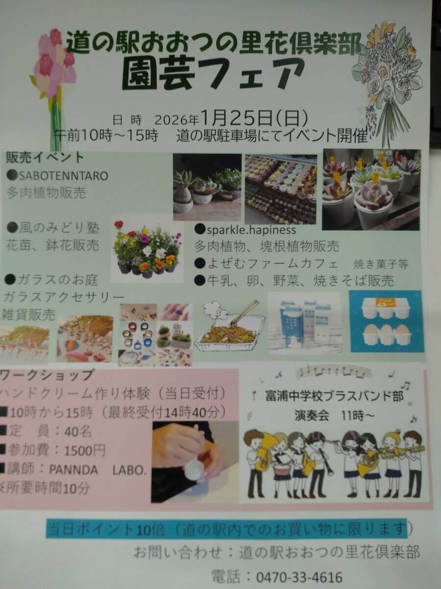 1月25日(日)道の駅おおつの里花倶楽部では、園芸フェアを開催いたします。