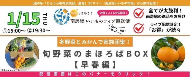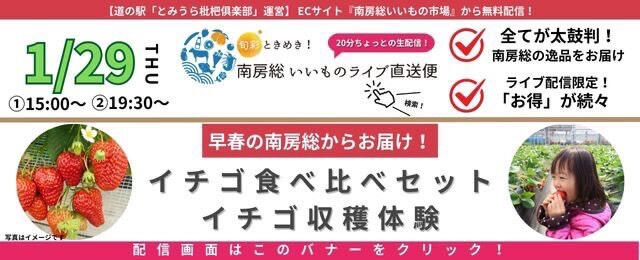 次回は2026年1月29日(木)に2回、20分程の『ON AIR!』(生配信)。①15:00~ ②19:30~ 配信します。配信内容は、早春の南房総を味わえる「イチゴの食べ比べセット」をお届け!お楽しみに!
