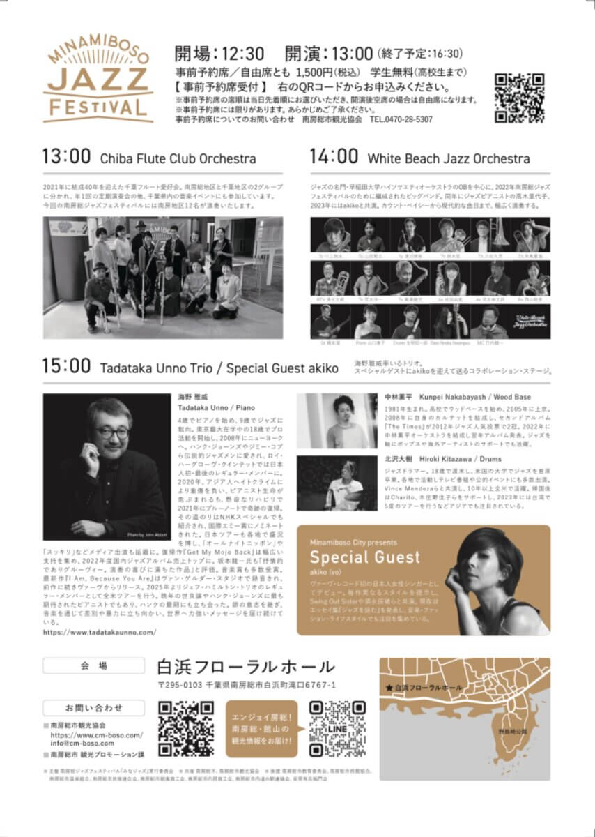 またお馴染みとなった、みなジャズハウスバンドのWhite Beach Jazz Orchestraや、地元からChiba Flute Club Orchestra(千葉フルート愛好会)も出演し、ステージを盛り上げます。
