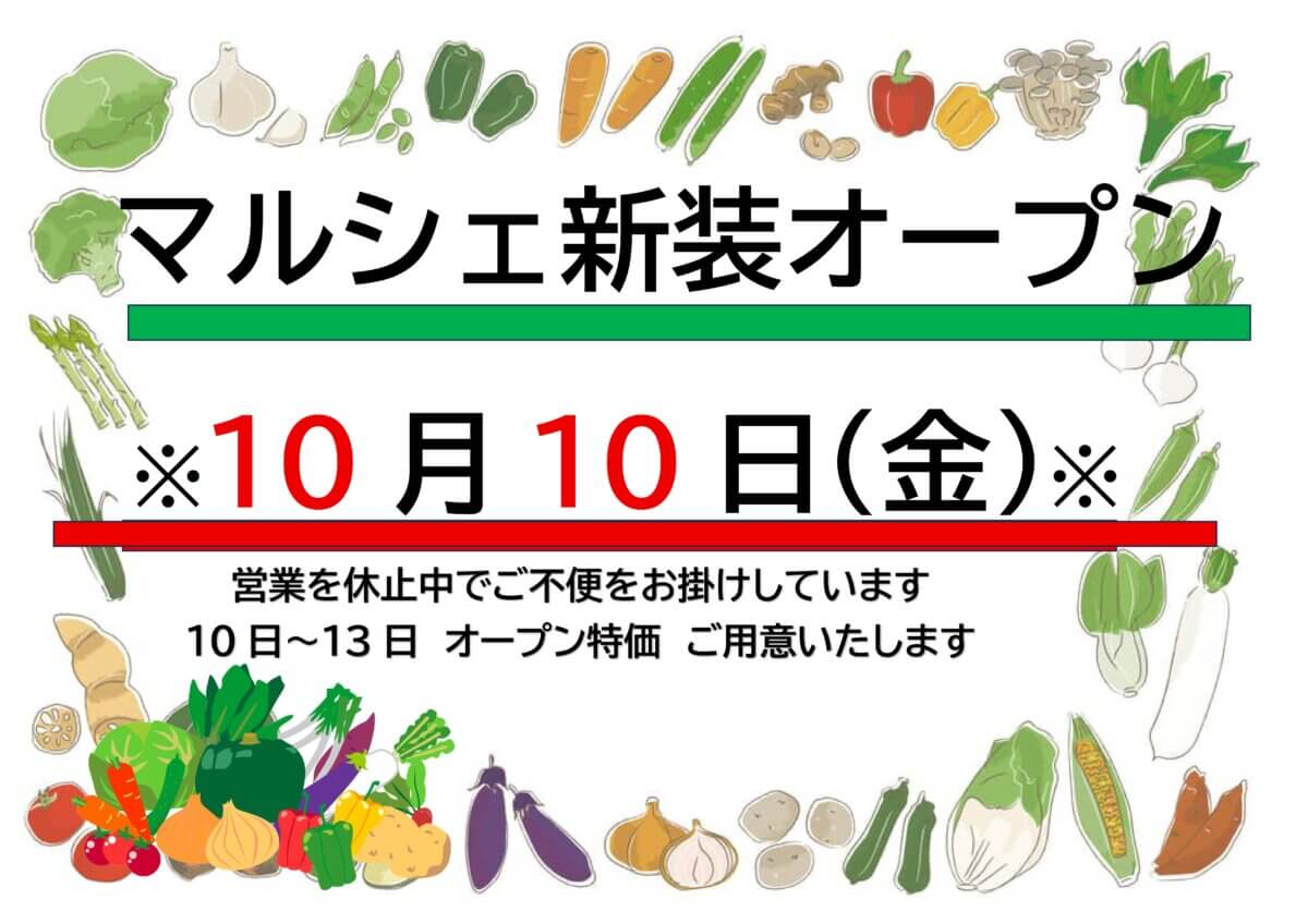 今までのマルシェの3倍の広さになり、リニューアルオープンに伴い10日~13日は特価での商品の販売もございます