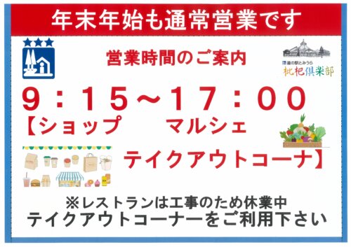 道の駅おおつの里 花倶楽部年末年始の営業時間のお知らせ
