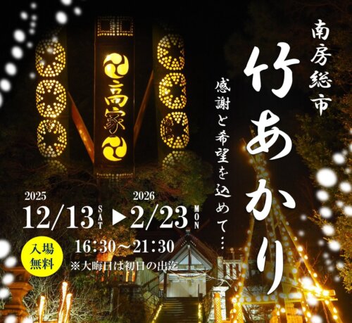 今年も高家神社で「竹あかり」が始まりました。南房総市立南房総中学校の3年生70名が製作した100本の […]