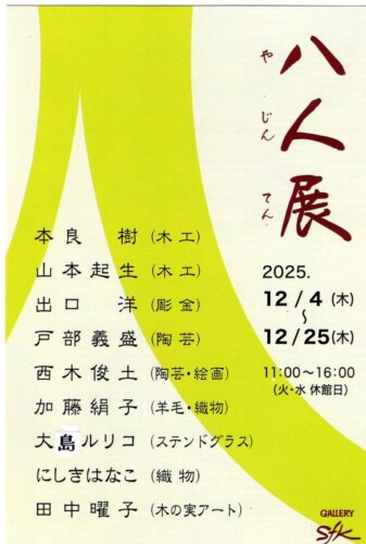 ギャラリーsfk「八人展」開催のお知らせ ギャラリーsfkでは、8名の作家による作品展示・販売を行う […]