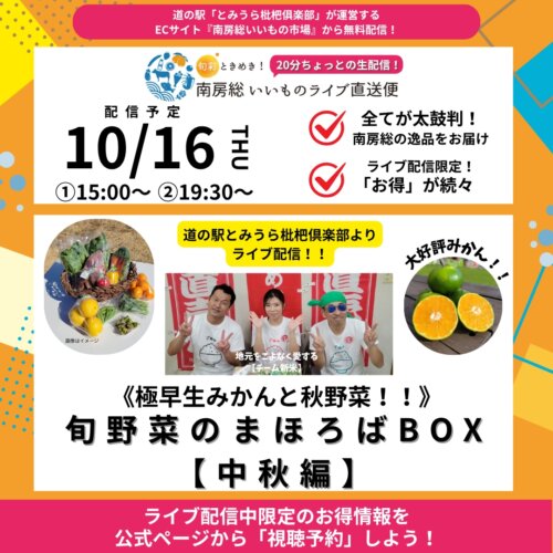 南房総いいものライブ直送便。通称「南房総ラブ直」 10/16の南房総ラブ直は、土のめぐみ館店長厳選温 […]