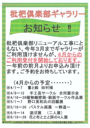 ギャラリーの利用 再開ご案内